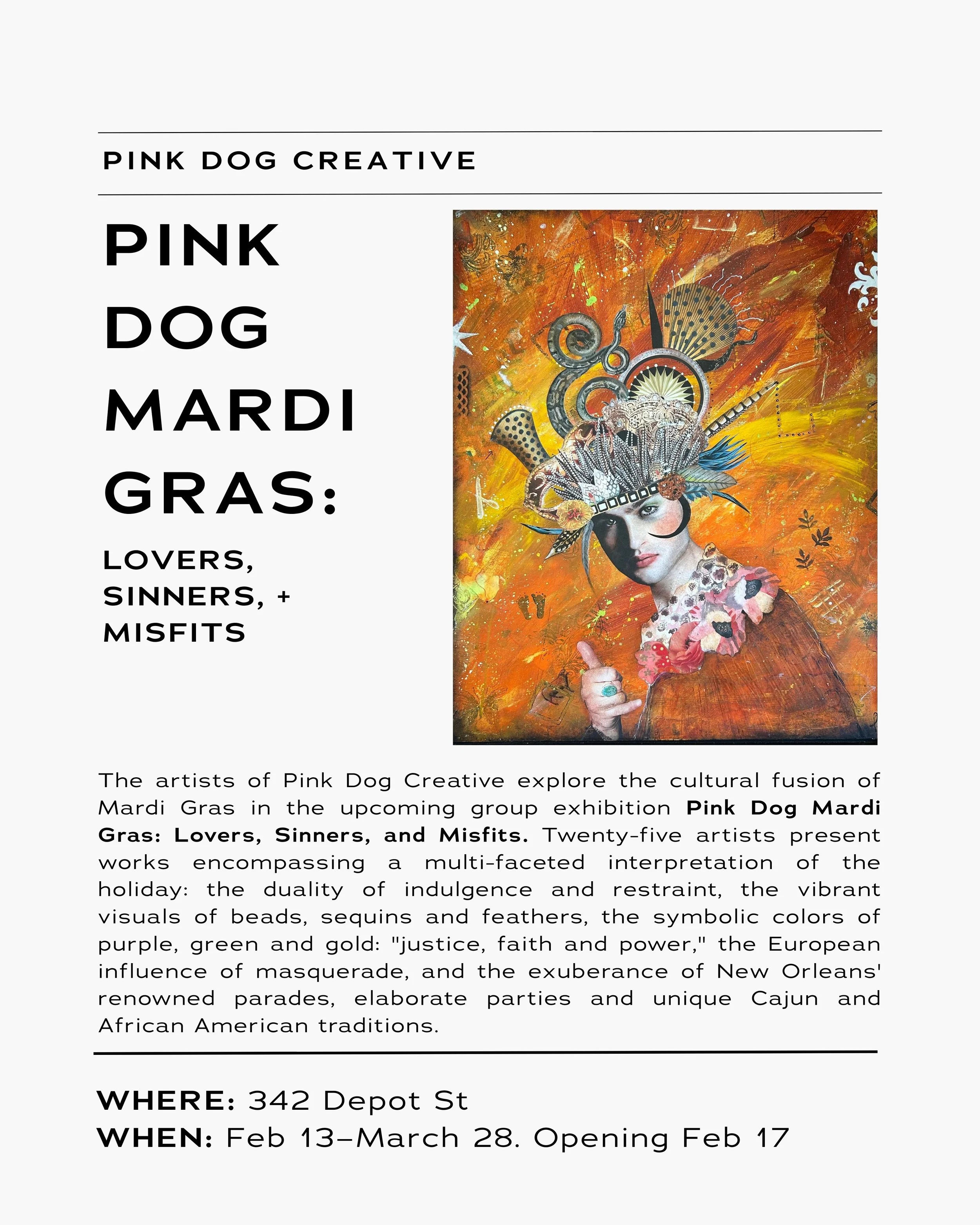 Our February Guide is here! We hope everyone is surviving these cold winter days. There are a few openings this month worth getting out of the house for! Pink Dog Creative will be hosting Pink Dog Mardi Gras, celebrating the holiday through a vibrant group show. Lindenfield + Lindenfield opens at the Black Mountain College Museum, presenting the artist Naomi Lindenfield’s work as a conversation with her mother’s textiles. Little Animals Space will be hosting events throughout the month, including a show on the artist Nick Raynold’s work. Revolve will be hosting events in their spaces, as well as welcoming TMG into a collaborative residency in the community space!